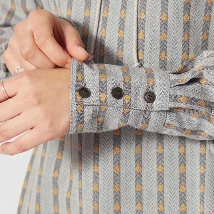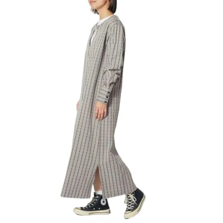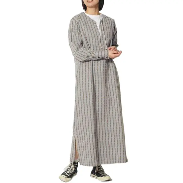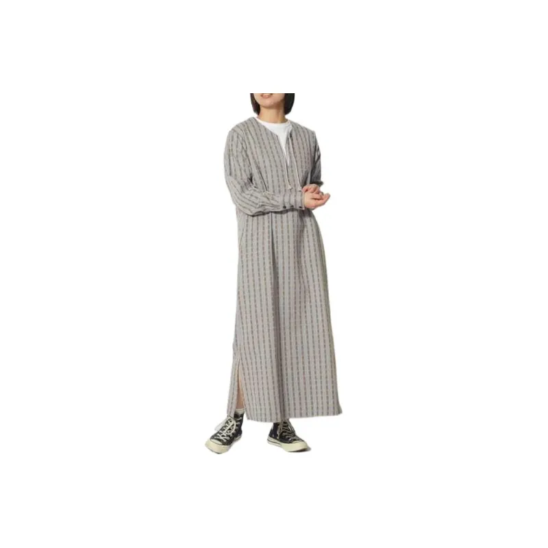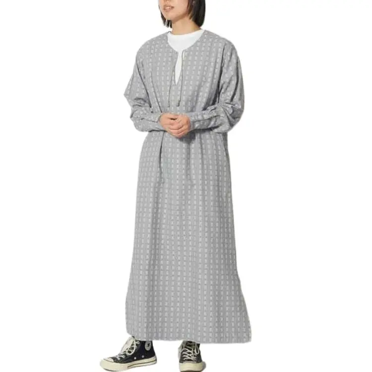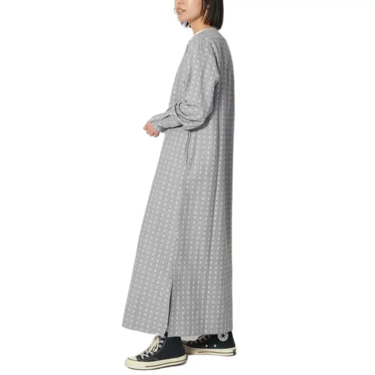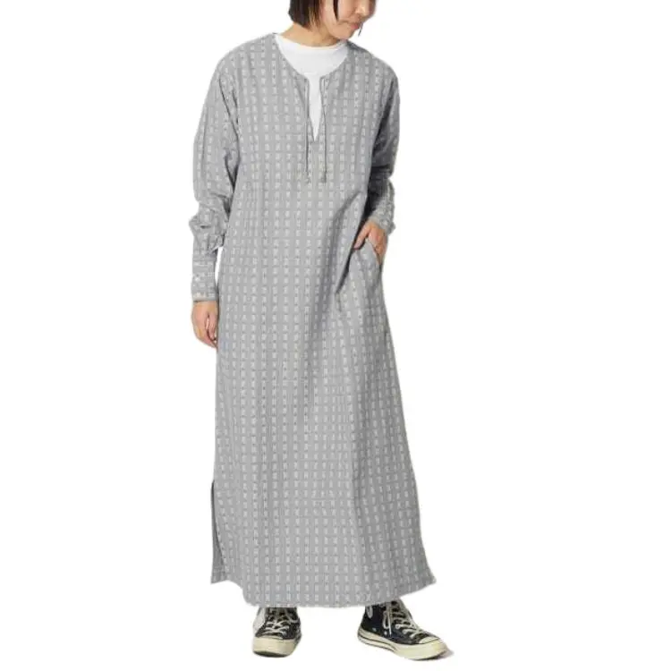 SNOW PEAK 23 Хлопок Dobby Узор "Елочка" Платье Длинное с Рукавами Платье Женское
