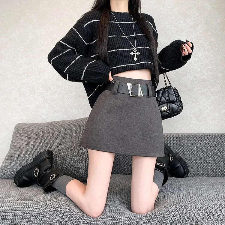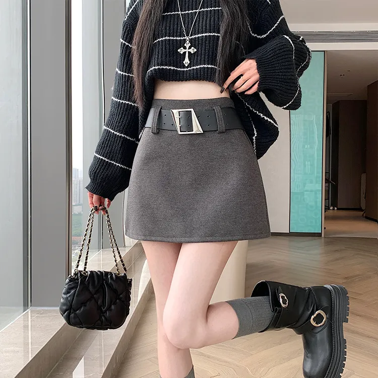 Цвет:Серый шерстяной юбка