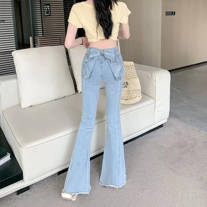 SNZX Задний шаговый шов Бант Джинсы Женские Джинсы