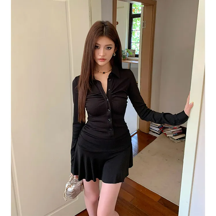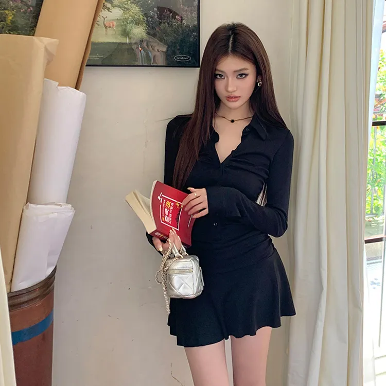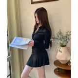 Цвет:Черная юбка A-силуэта с утяжкой на талии