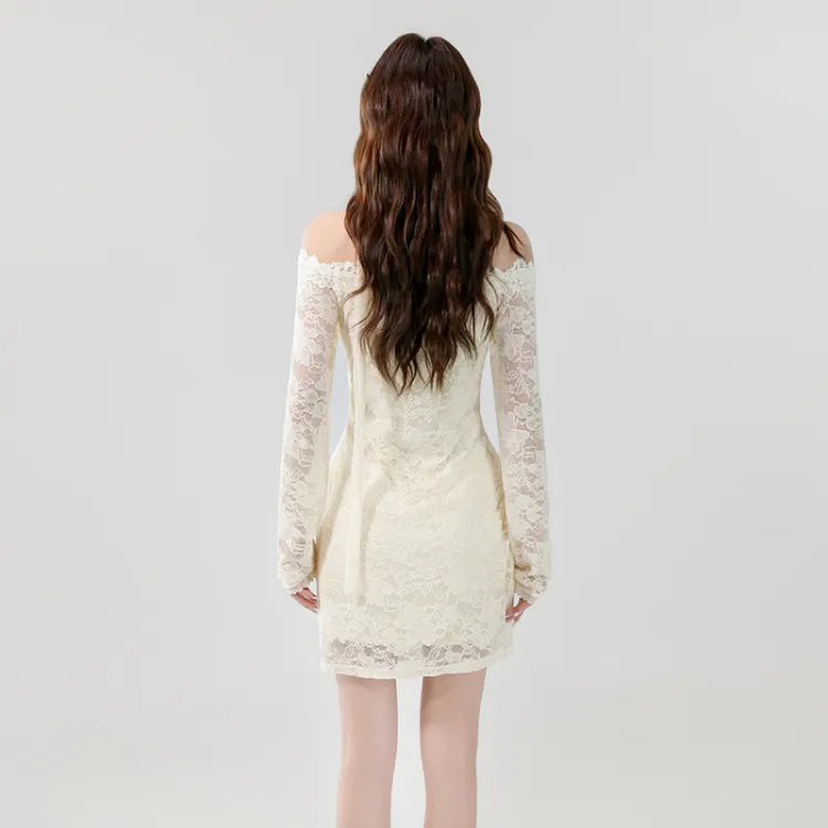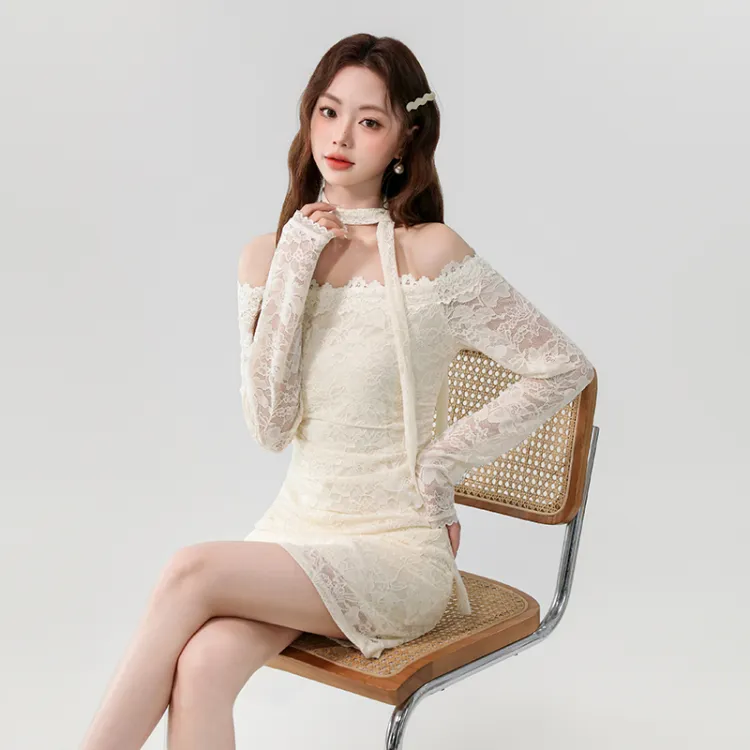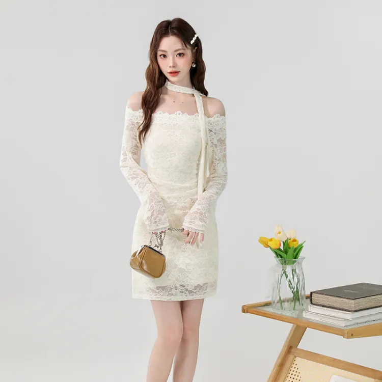 SNZX Длинное платье с длинными рукавами женское абрикосового цвета