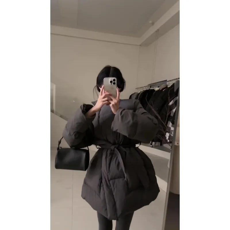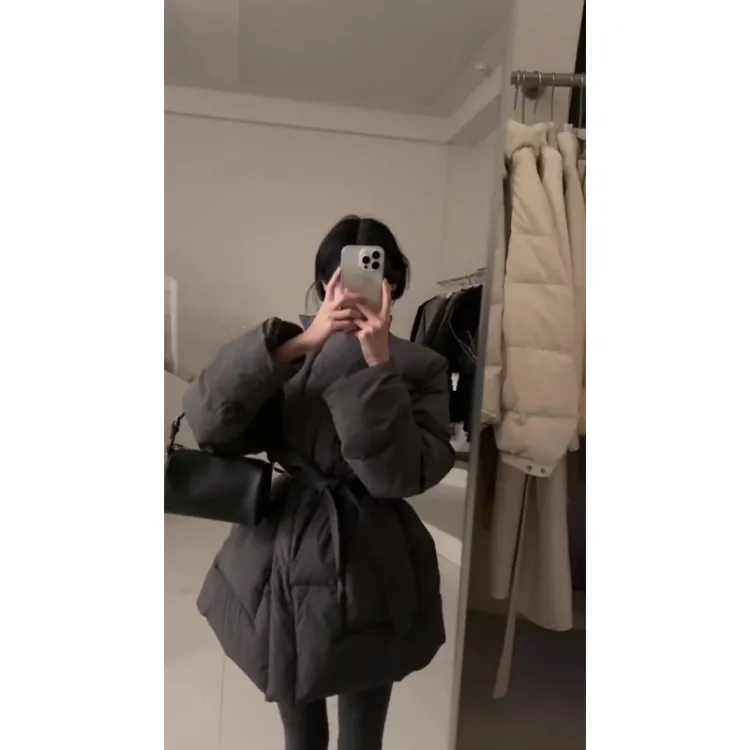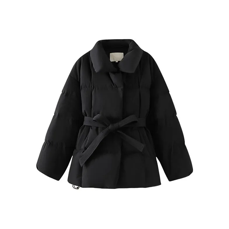Цвет:Black Lace-Up Cotton Down Jacket Черный шнуровка хлопковый пуховик