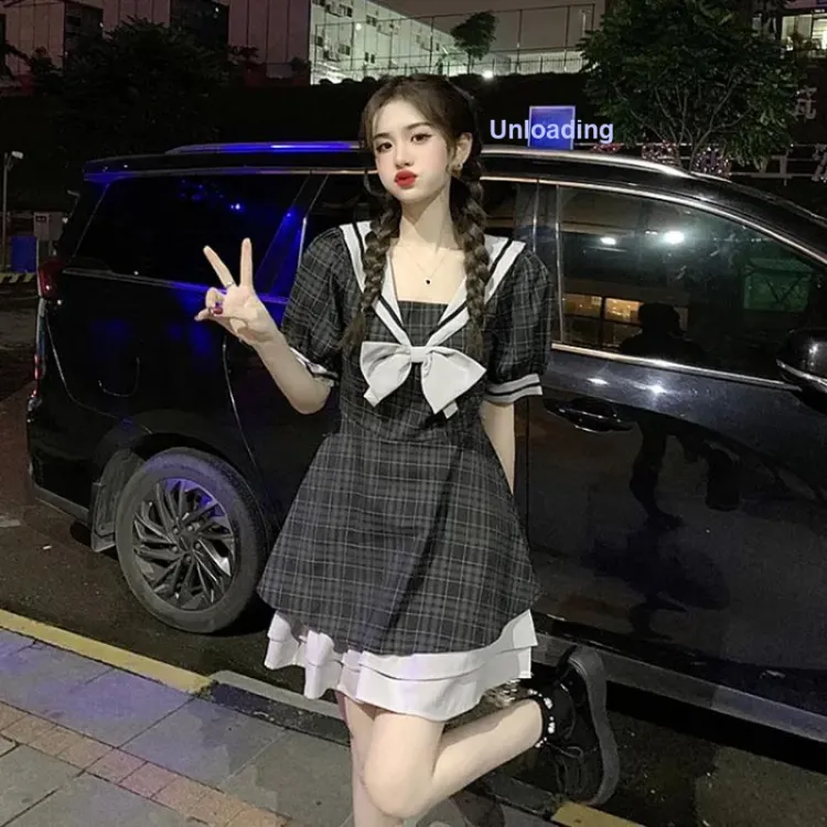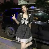 Цвет:Черное платье в клетку.