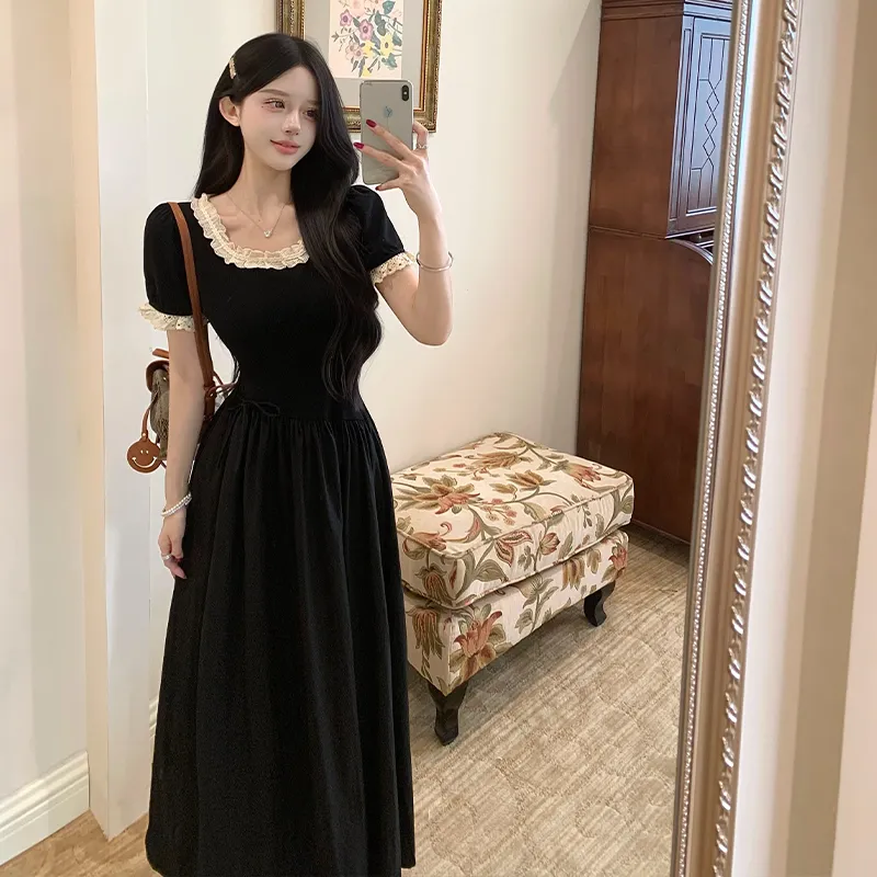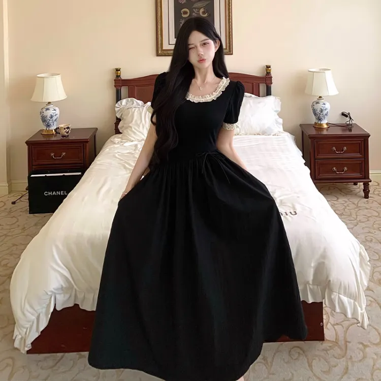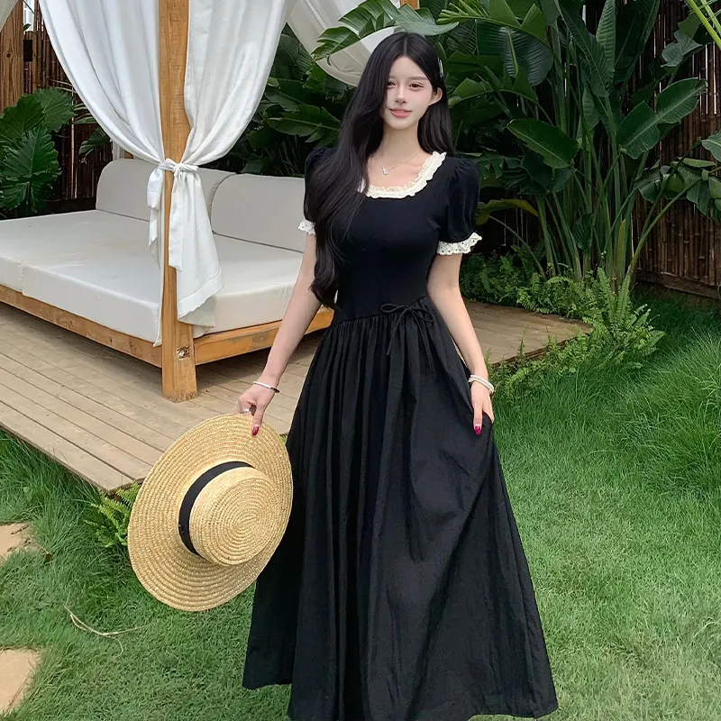 Цвет:Black Lace Lace Trim Long Skirt Черное кружево, кружевная отделка, длинная юбка