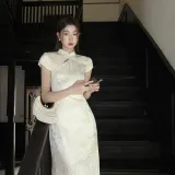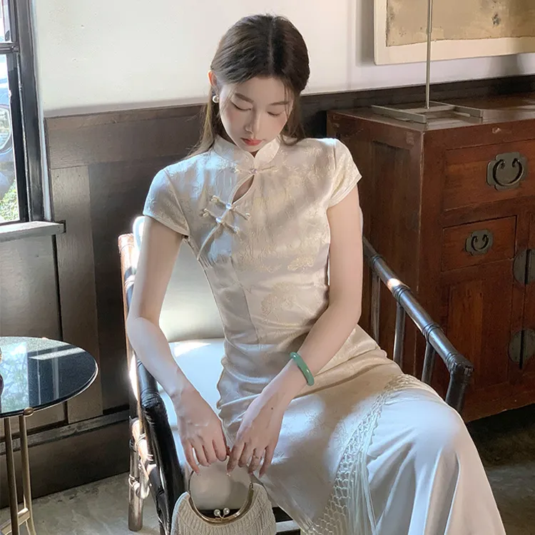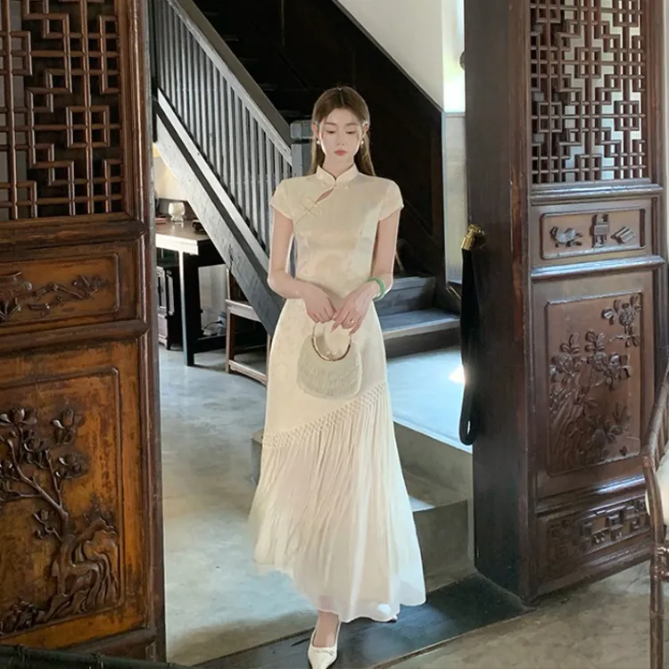 Цвет:Абрикосовое Желтое Платье Ципао (Неэластичное)