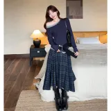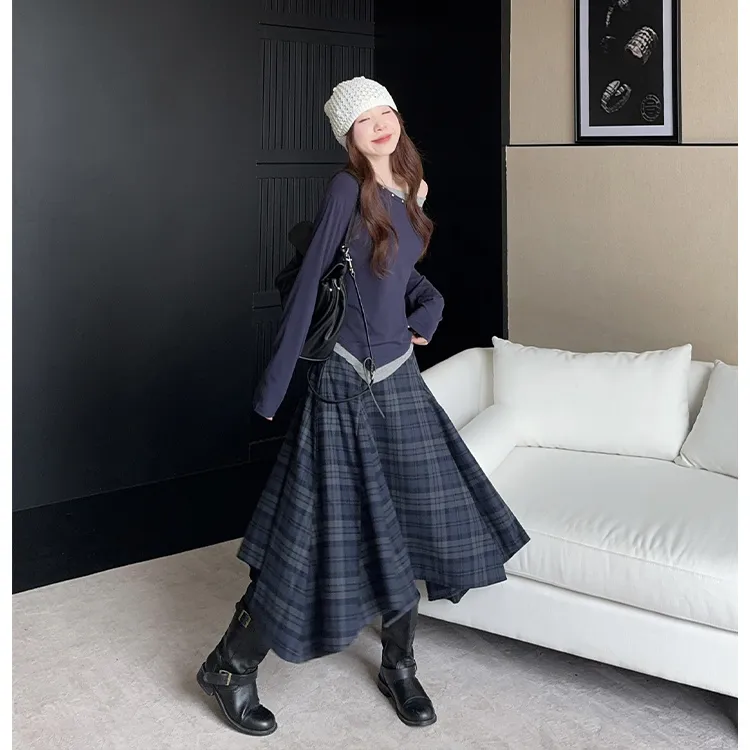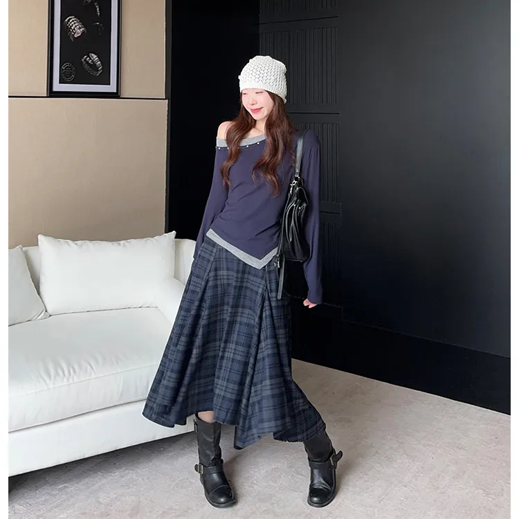 Комплект:Комплект одежды (Асимметричный топ + Клетчатая юбка)