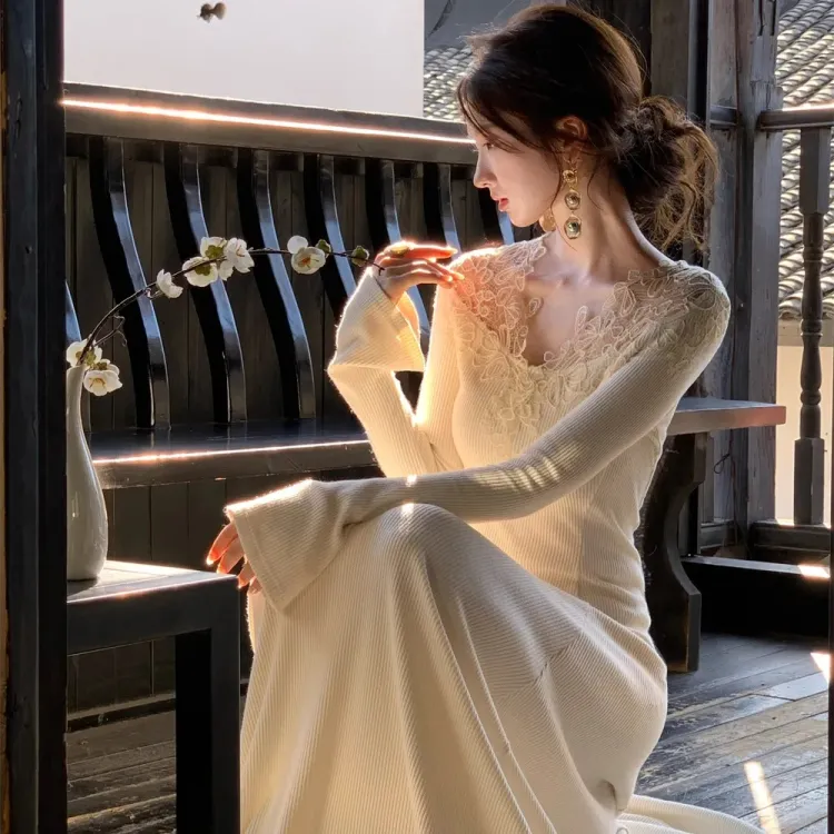 SOIE Длинное платье с длинными рукавами женское