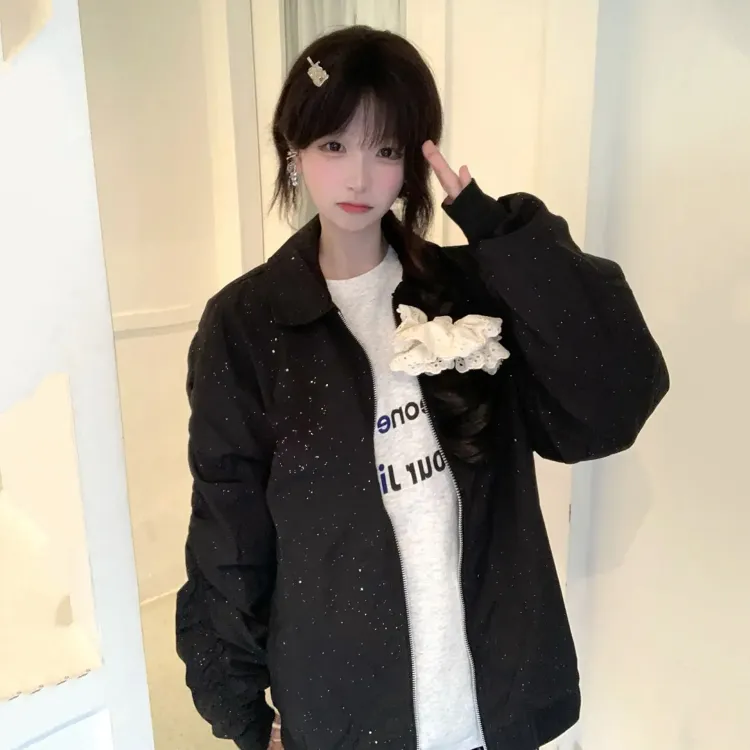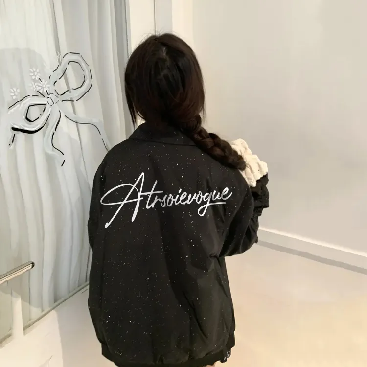 Чёрный Розовый (Улучшенный Отложной Воротник Гипсофила Куртка)