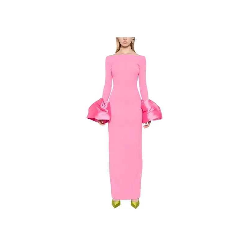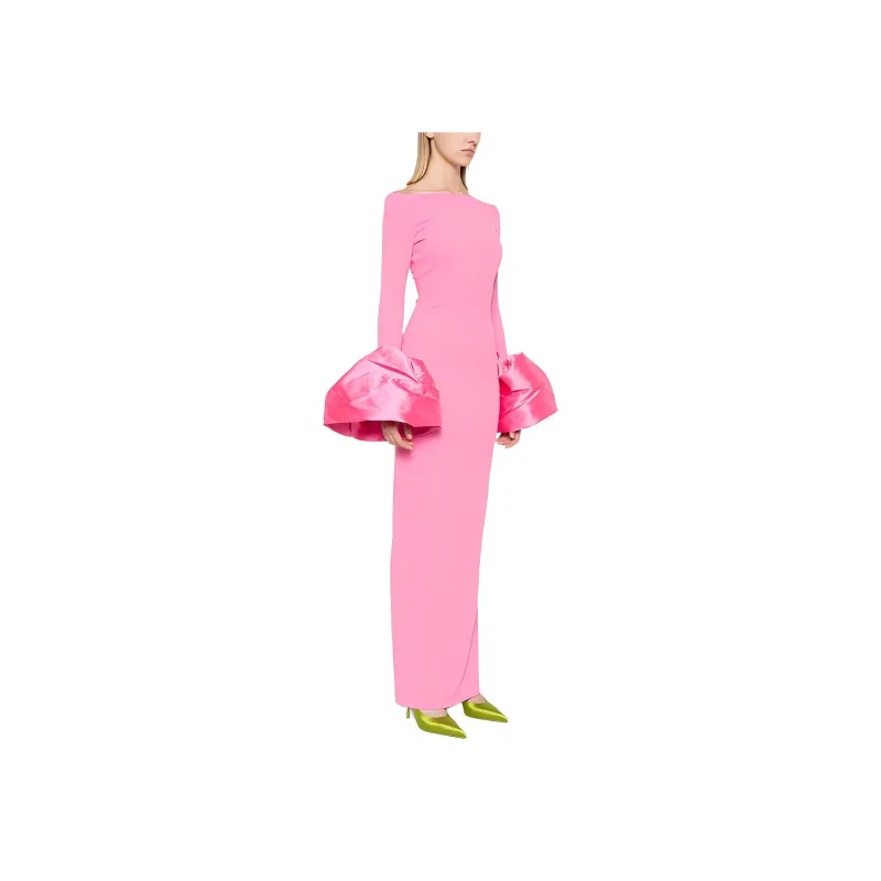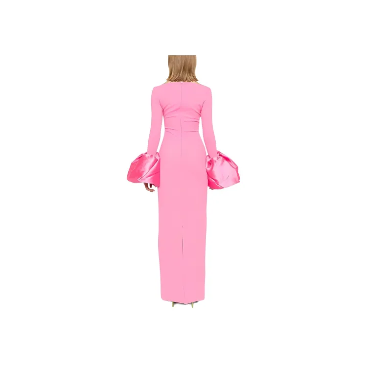 SOLACE LONDON Длинное платье с длинными рукавами женское розовое