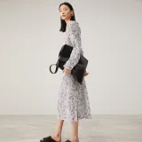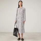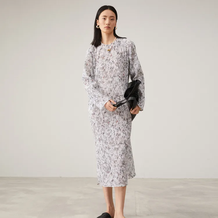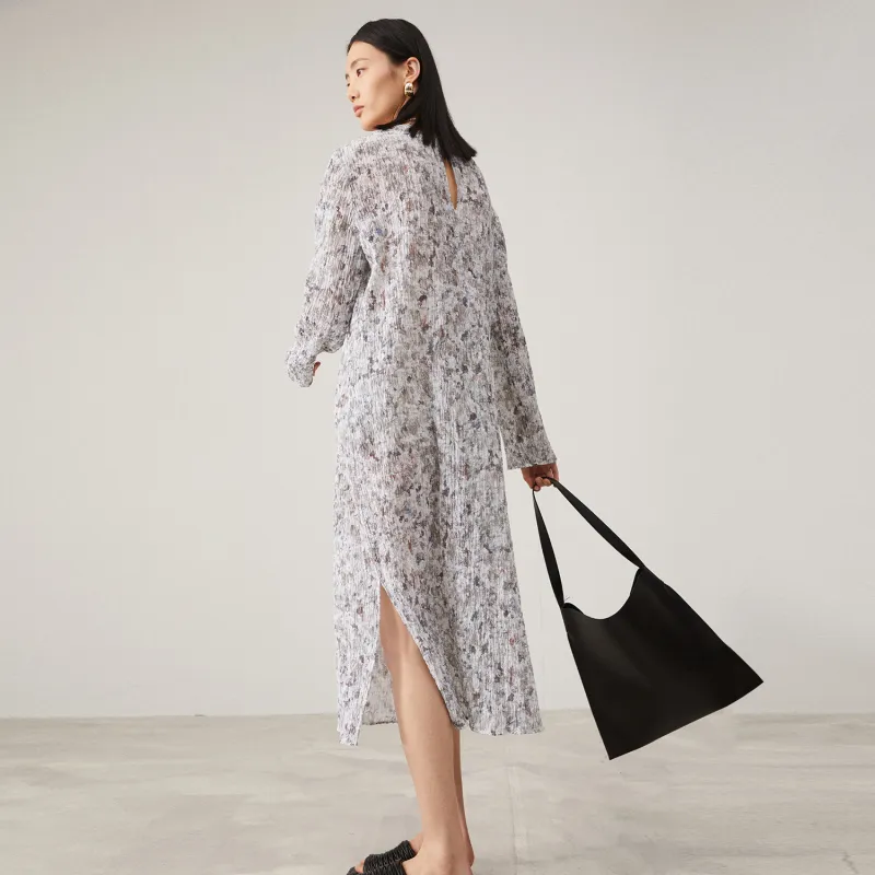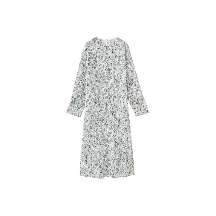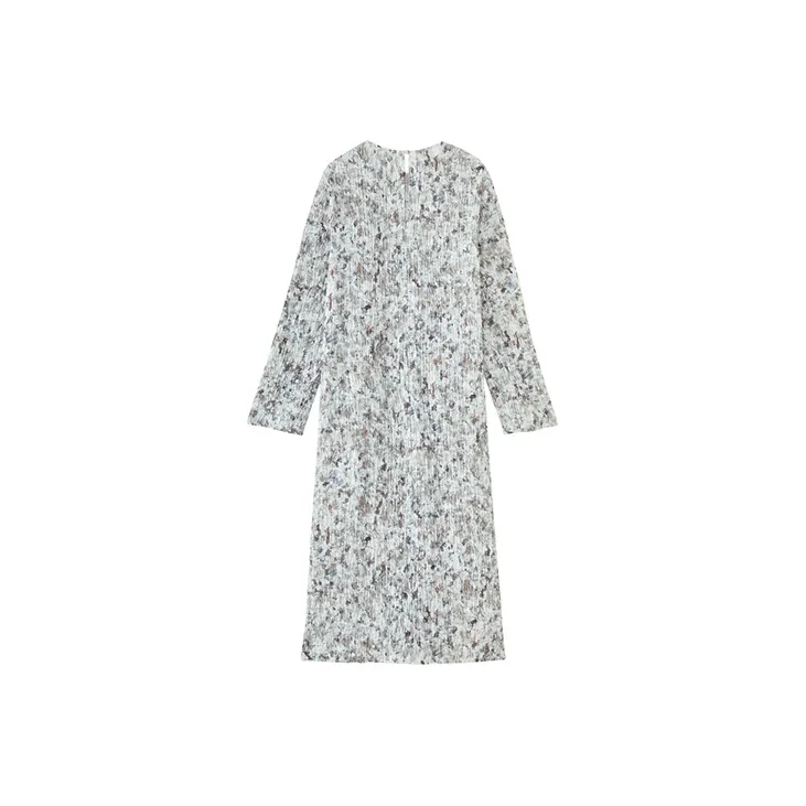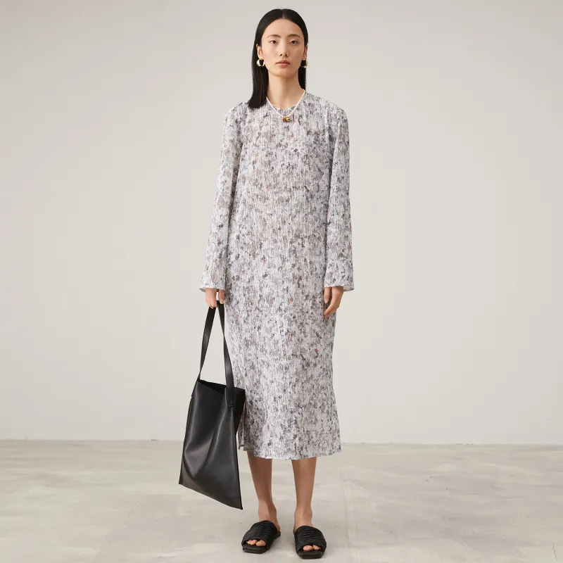 SOLWEIGE Натуральный Текстурированный Плиссированный Принт Женские Длинные Платья с Рукавами