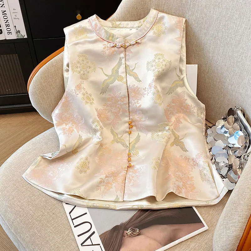 SONDR Абрикос с Журавлем And Eight Treasures Цветочный Женские Жилеты
