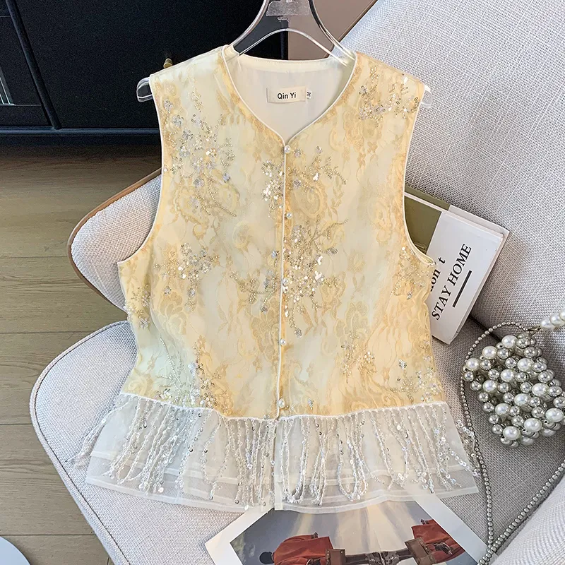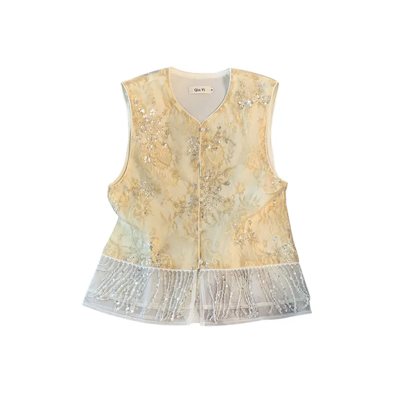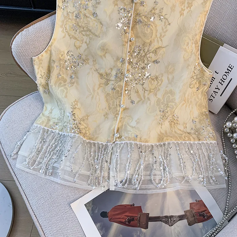 SONDR Желтый Вышивка Жилет Женские Жилеты