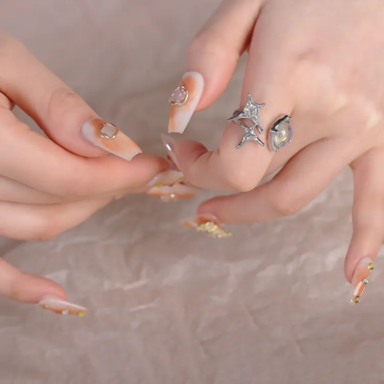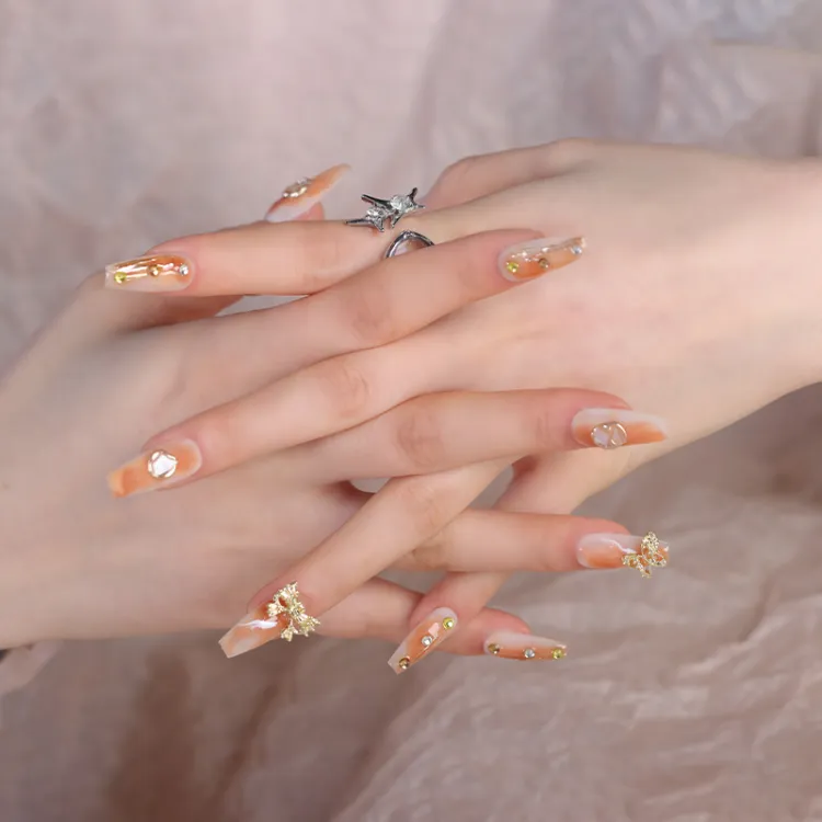 Song Biography Смешанный Апельсин Мягкий 3D-эффект False Nail Средний LADDER 25мм
