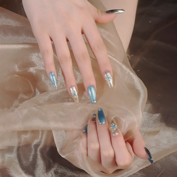 Song Biography Синий Bracchetti Сверкающий страз Кошачий глаз Осветляющий False Nail Средний LADDER 25 мм
