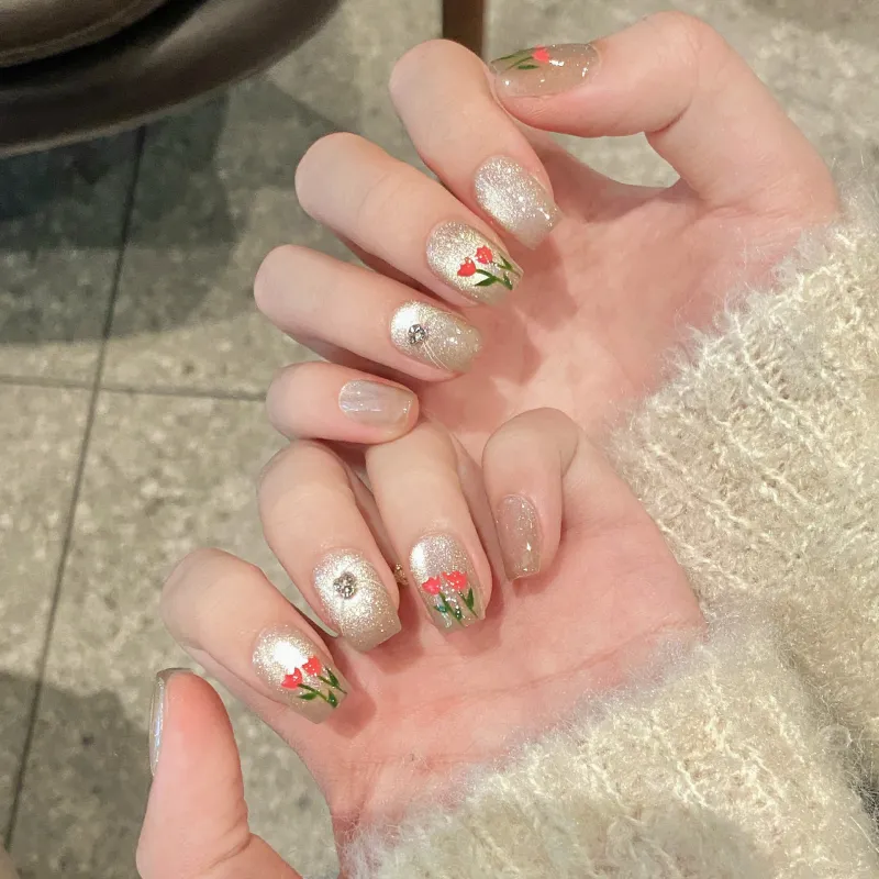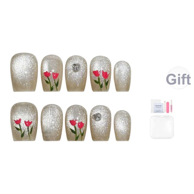 Song Biography Dreamy Crystal Cat Eye Tulip Осветляющий False Nail Короткий LADDER 15 мм
