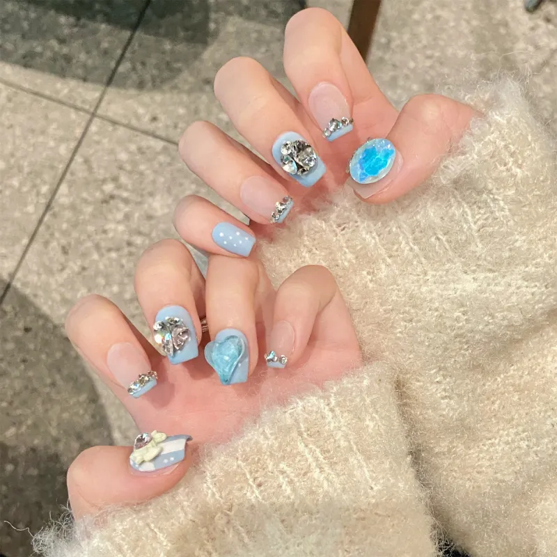 Song Biography Элегантность Сверкающий страз Сердце False Nail Короткий LADDER 15 мм