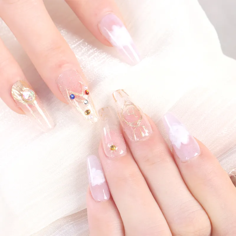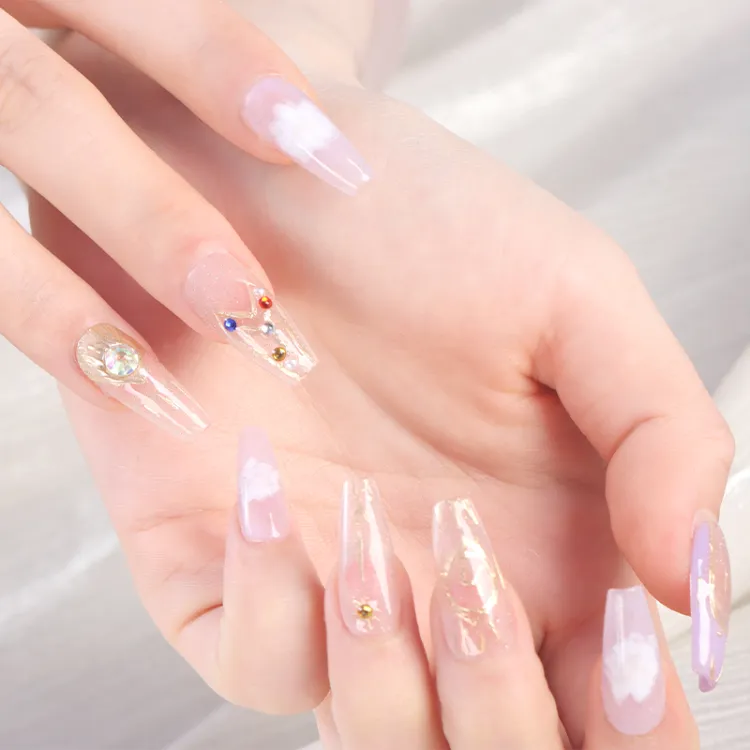 Song Biography Позолоченный Смешанный Градиент Фиолетовый Осветляющий Премиум Feel False Nail Средний ЛАДДЕР 25 мм