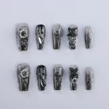 Песня Биография Готический стиль Розовый Премиум Feel Фальшивая ногть Средний ЛАДДЕР 25 мм