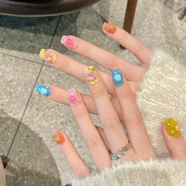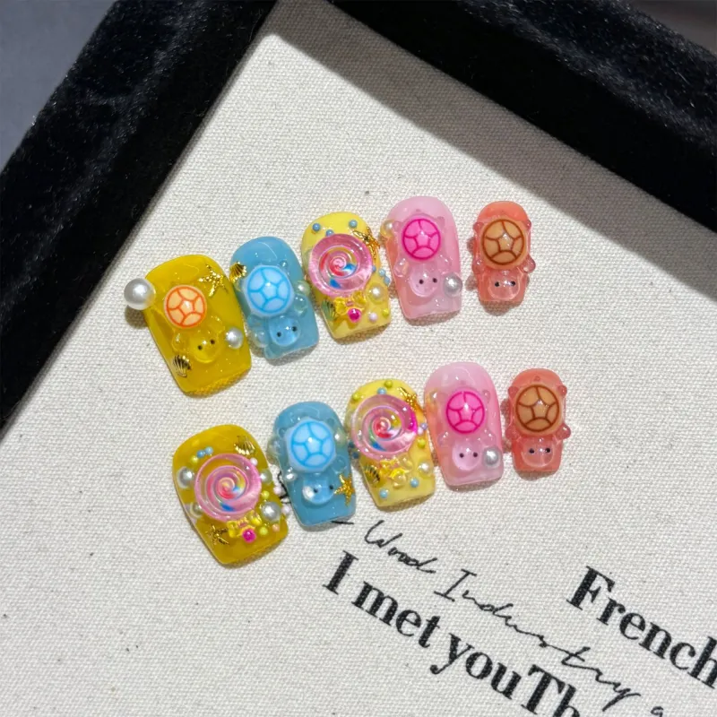 Song Biography Многоцветный Дофаминовая одежда Черепаха 3D-эффект False Nail Короткий LADDER 15mm
