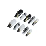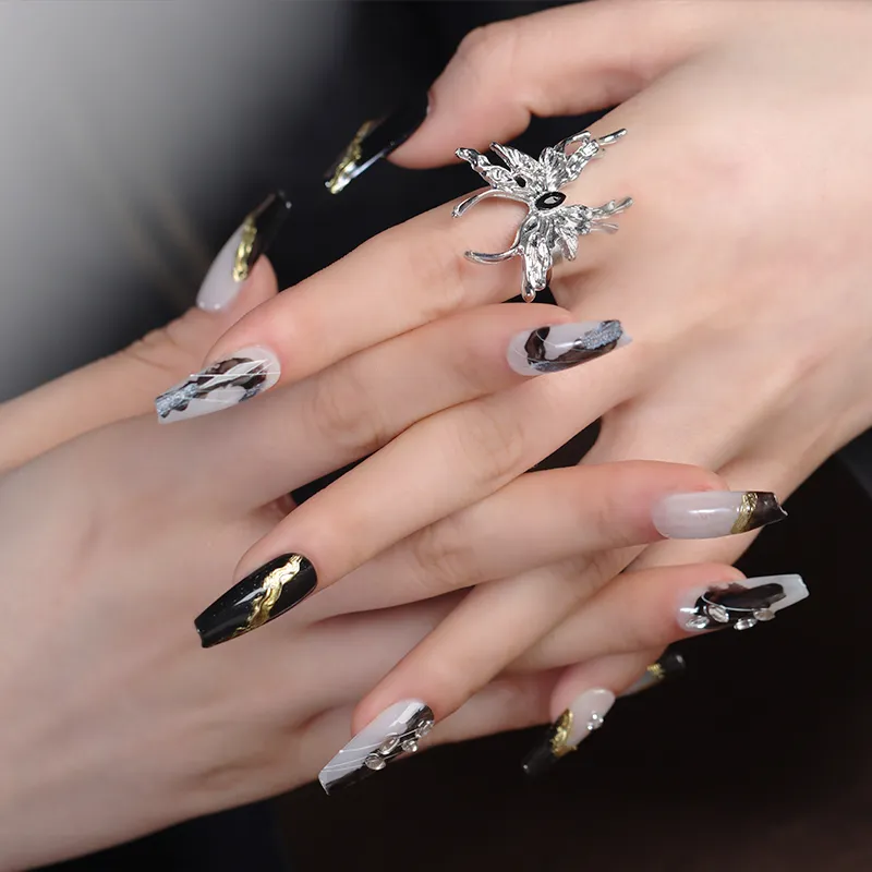 Song Biography Мода Черный Золотой Осветляющий Мягкий Ручной Рисунок Смешанный 3D Эффект Позолоченный False Nail Средний Стулка 25 мм