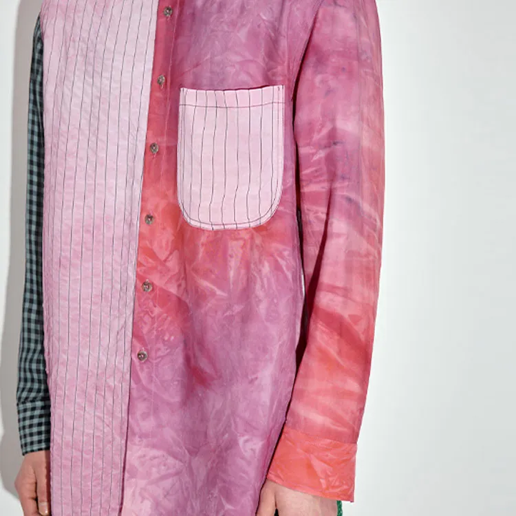 Розовая полоска: 100% вискоза Тай-дай 1: 100% вискоза Синяя полоска: 84% льняная ткань, 16% хлопок Клетчатый: 91% вискоза, 9% шелк