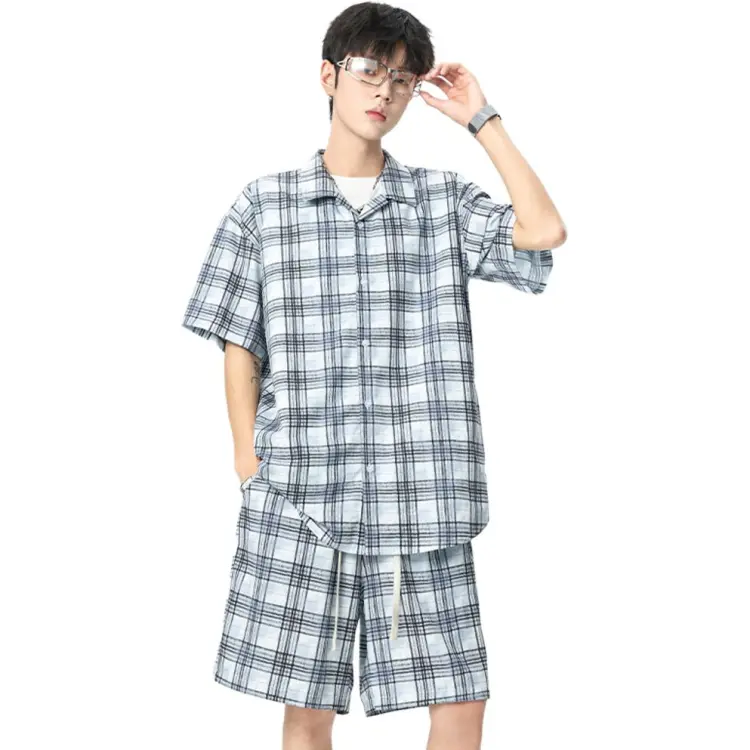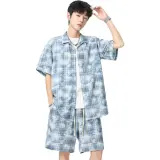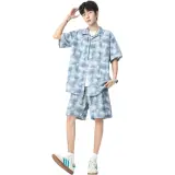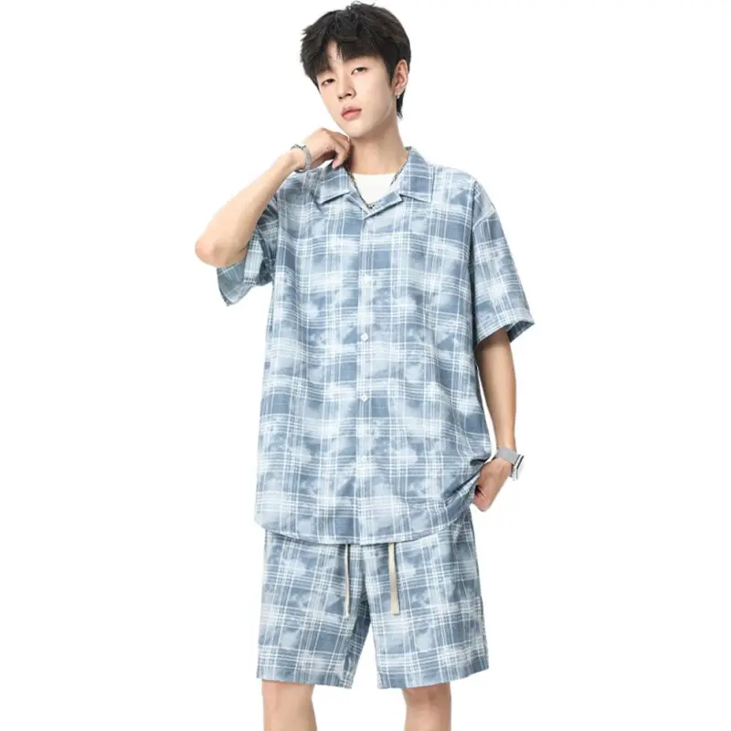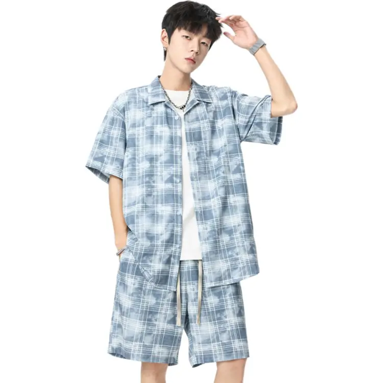 Комплект:Синяя рубашка + синие шорты