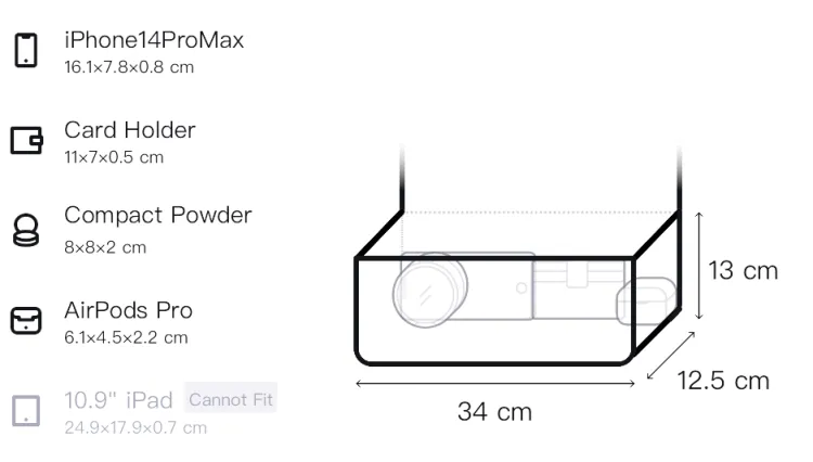 Длина 34 см * Ширина 12,5 см * Высота 13 см