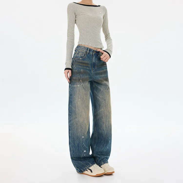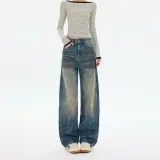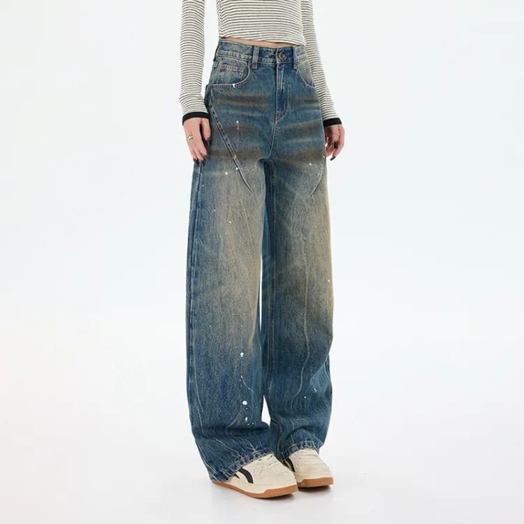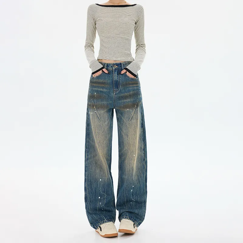 SONGS ALONG Ностальгические синие штаны унисекс джинсы