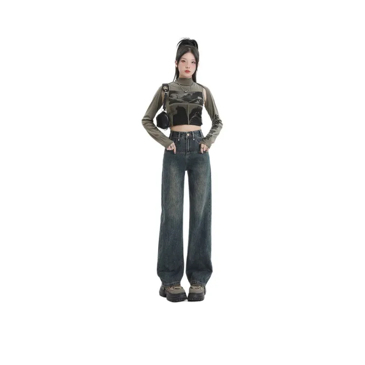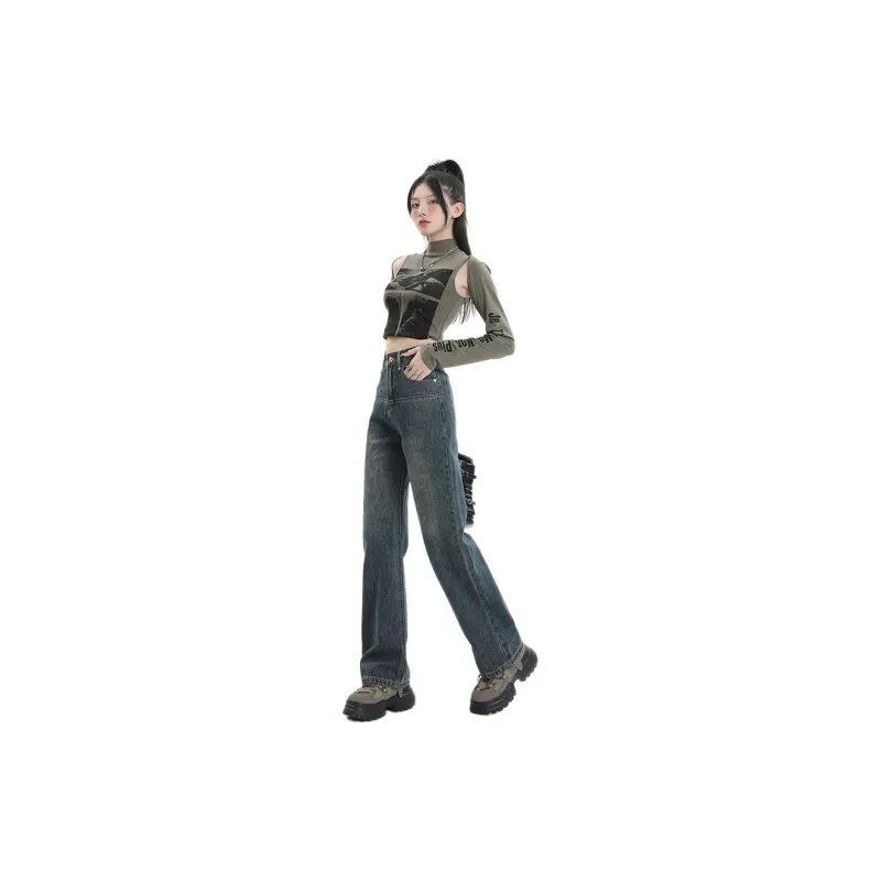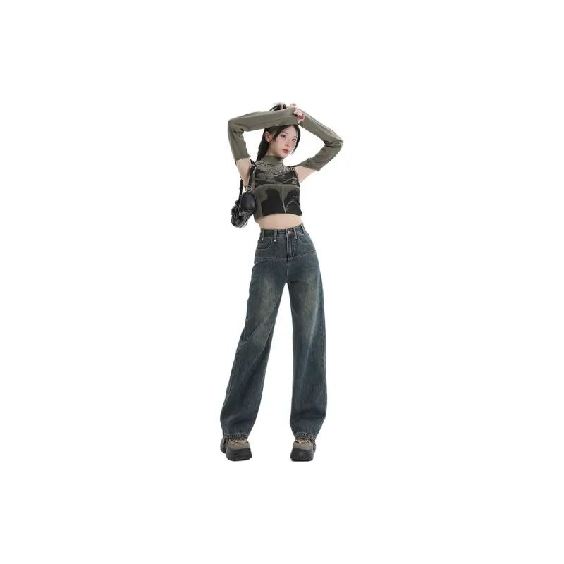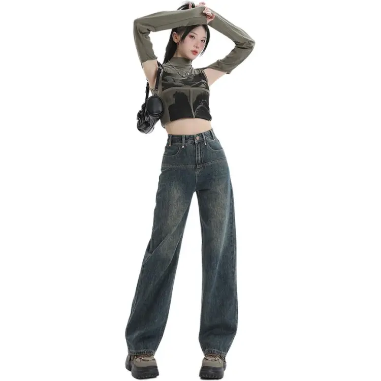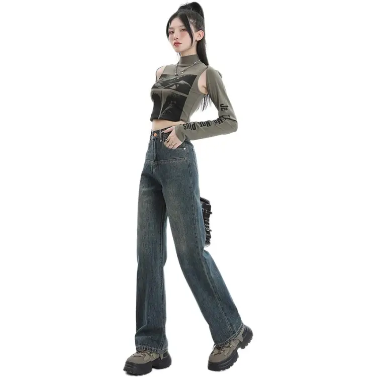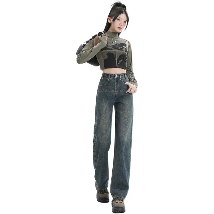 SONGS ALONG Джинсы Женские Винтаж Синий