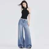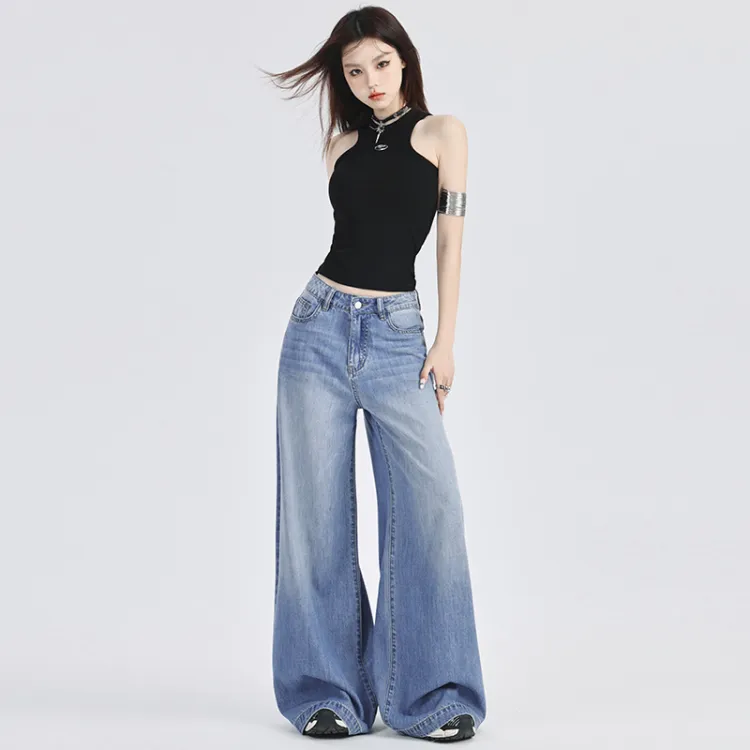 SONGS ALONG Джинсы Женские Выстиранные Синий