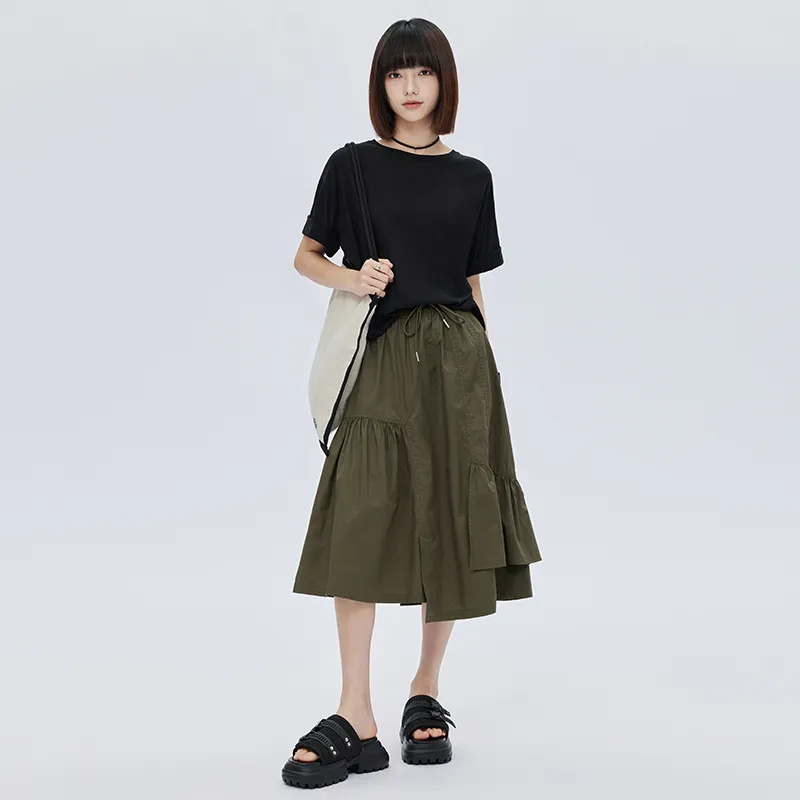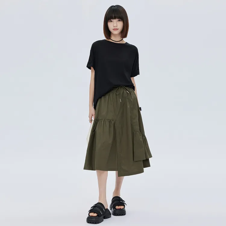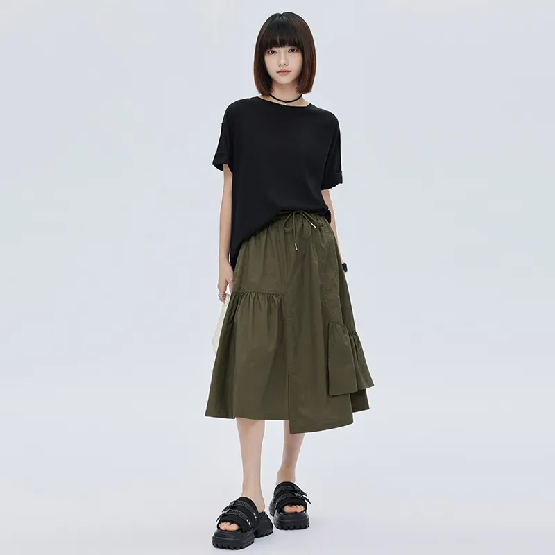 SOON FLOWER Повседневная длинная юбка женская армейский зеленый