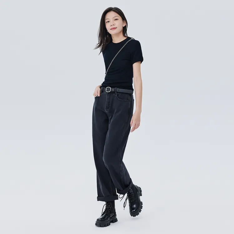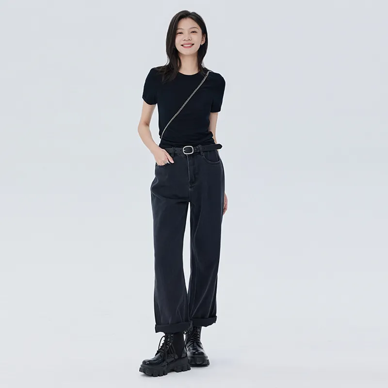 SOON FLOWER Черные Женские Джинсы