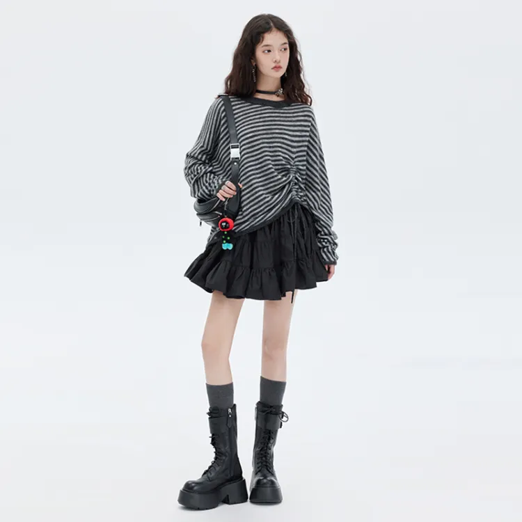 SOON FLOWER Темно-серый Полосы Женские Трикотаж