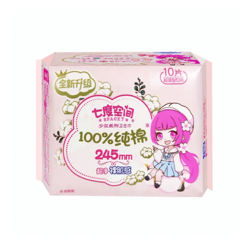 SPACE7 Girlish 100% хлопок Сухой и свежий Дышащий Для дневного и ночного использования Гигиенические прокладки Proof от протечек 48 шт