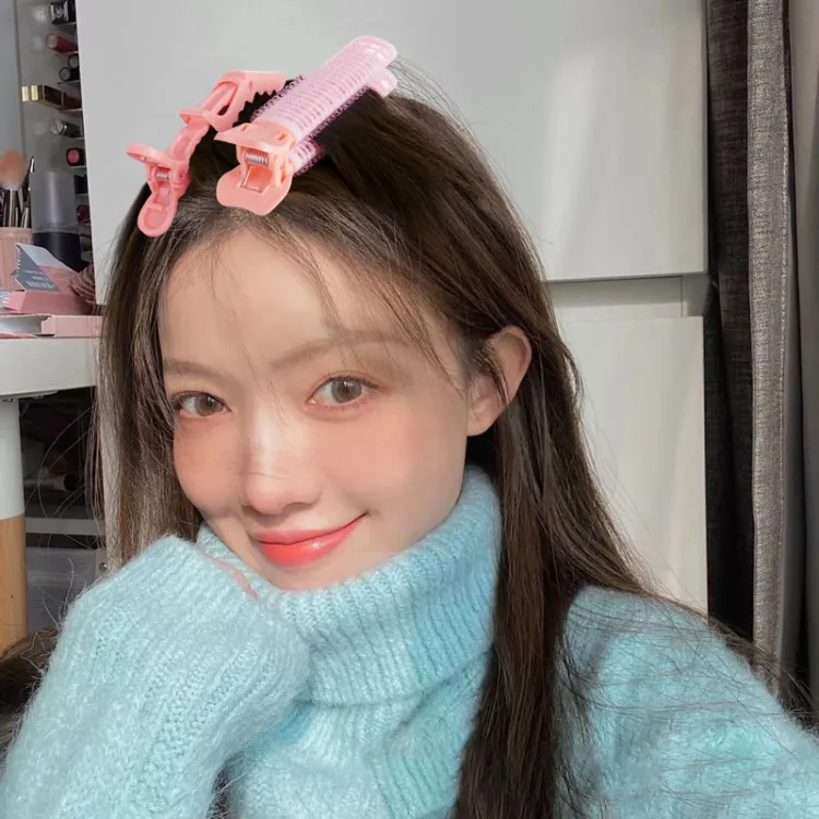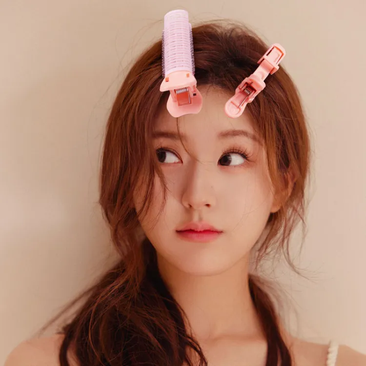 Шёлковая чёлка для завитых волос - розовая, упаковка из 4 штук