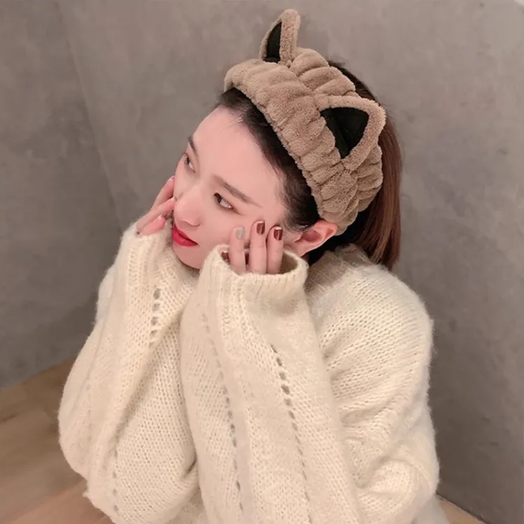 Кошка Ухо Комплект [Верблюжий цвет Ободок + Резинка для волос]