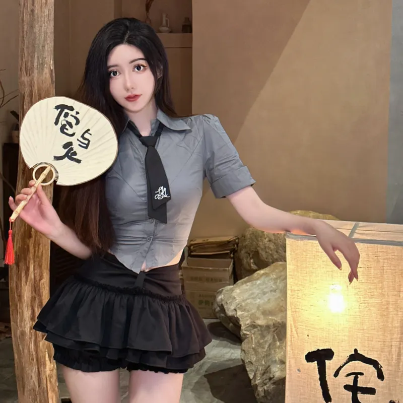 Spicy Gals Комплект с юбкой Женские Серый Черный