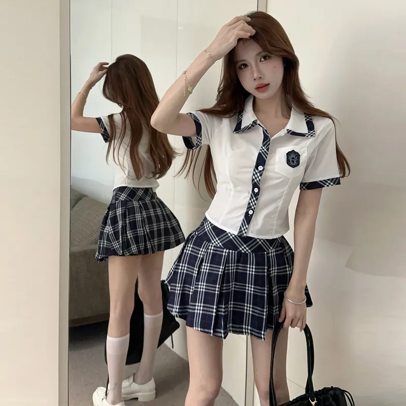 Комплект:Белая рубашка + клетчатая юбка