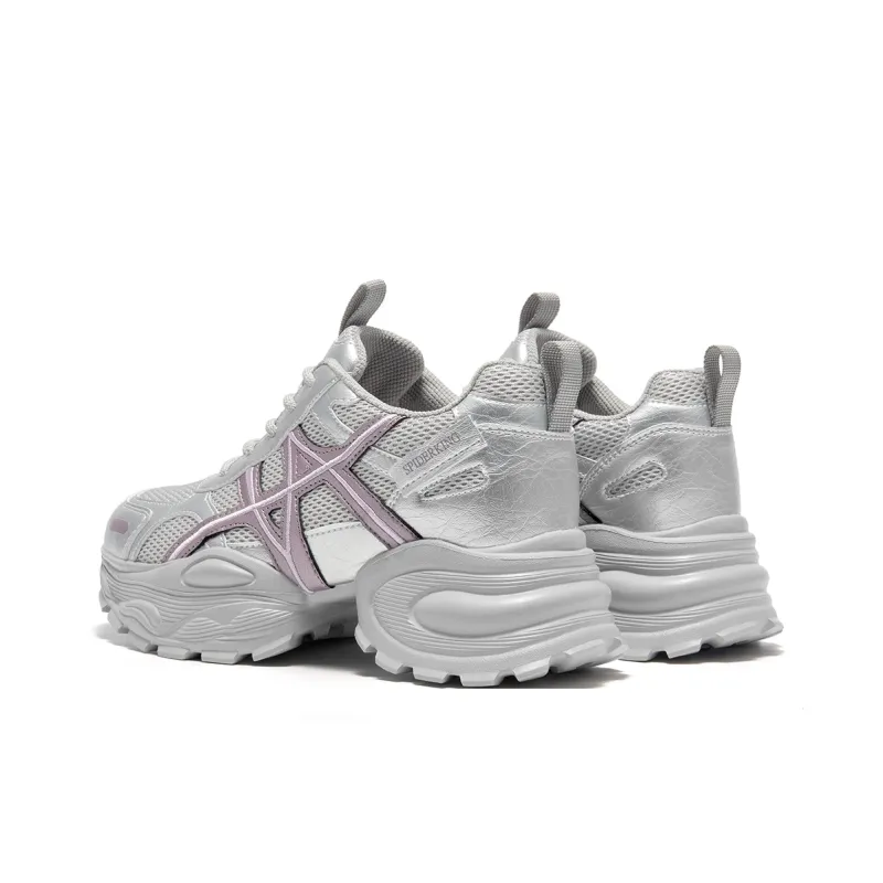 Spider King Low Топ Кроссовки с Толстой Подошвой Женские Серебряные
