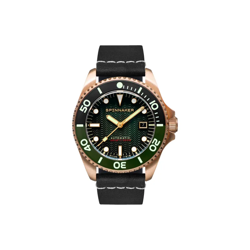 SPINNAKER Наручные часы Автоматический Механический Механизм Кожаный ремешок Зеленый циферблат Мужские часы
