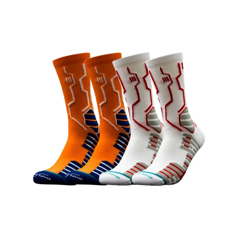Красный + Оранжевый противоскользящие эластичные баскетбольные носки [2 упаковки]