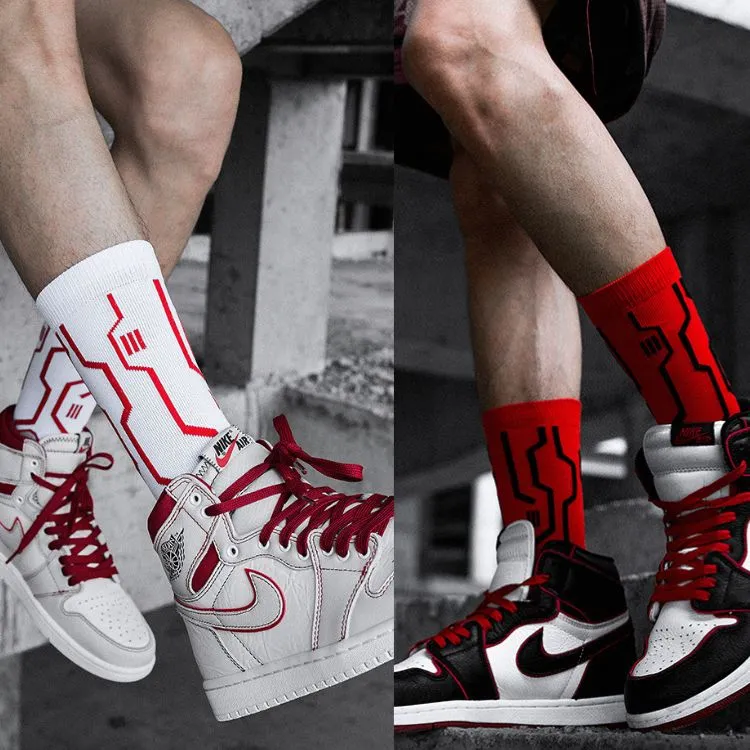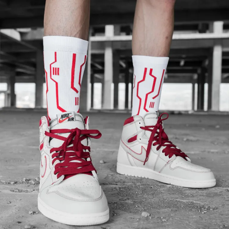 Красный + Белый носки без нижней юбки и эластичные баскетбольные носки [2 пары]