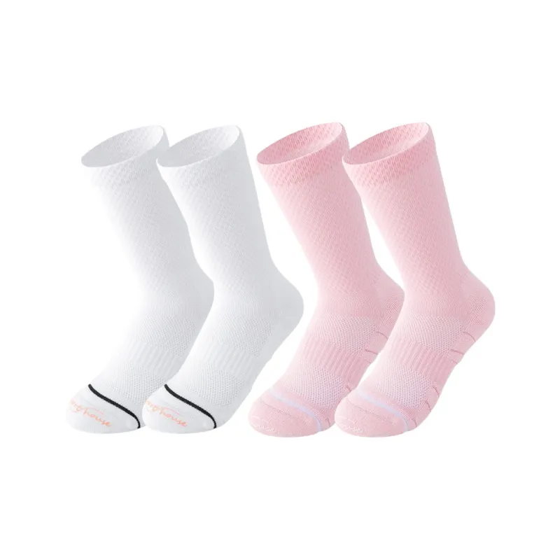 Белый+Розовый Профессиональные носки Crew Скакалка Универсальные спортивные носки [2 упаковки]