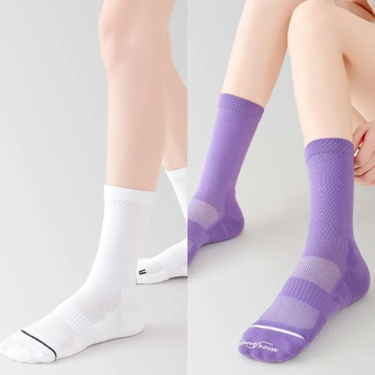 Белый+Фиолетовый Профессиональные носки Crew Скакалка Универсальные спортивные носки [2 упаковки]