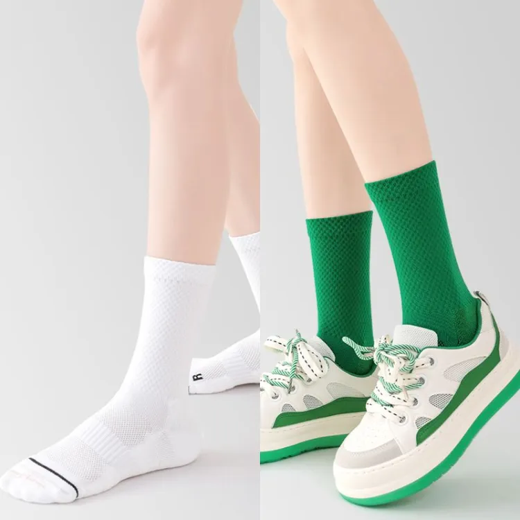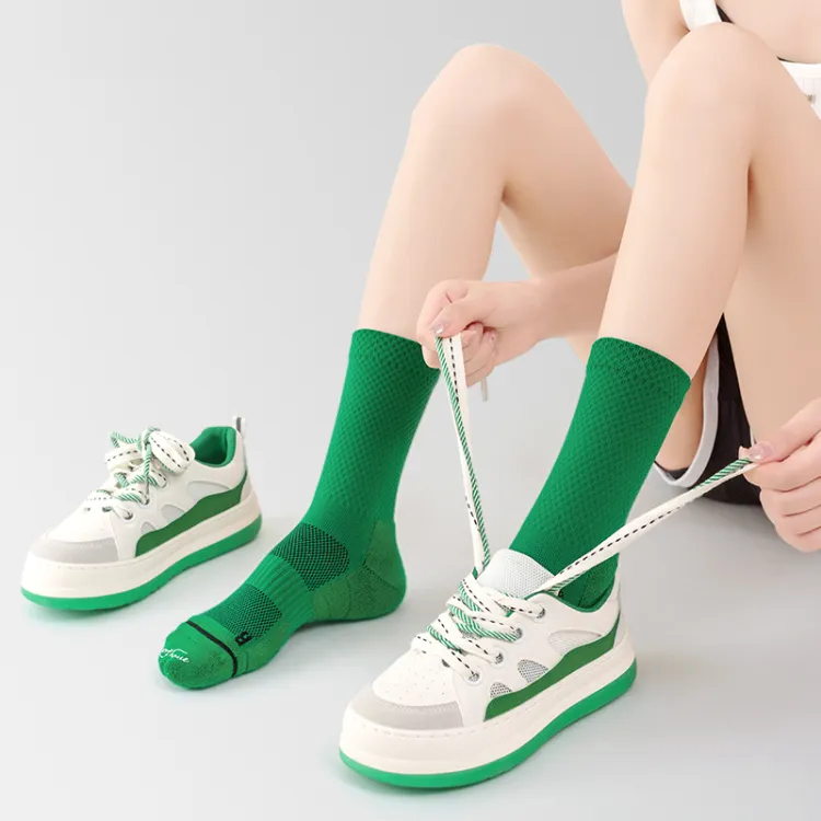 Белый+Зеленый Профессиональный Crew Носки Скакалка Универсальные Спортивные Носки [2-Пачка]