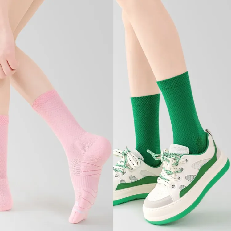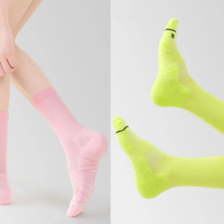 Розовый + Зеленый Профессиональный Носки Crew Скакалка Универсальные Спортивные Носки [Комплект из 2 пар Пачка]