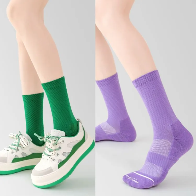 Фиолетовый + Зеленый Профессиональные Носки Crew Скакалка Универсальные Спортивные Носки [Набор из 2 пар Упаковка]