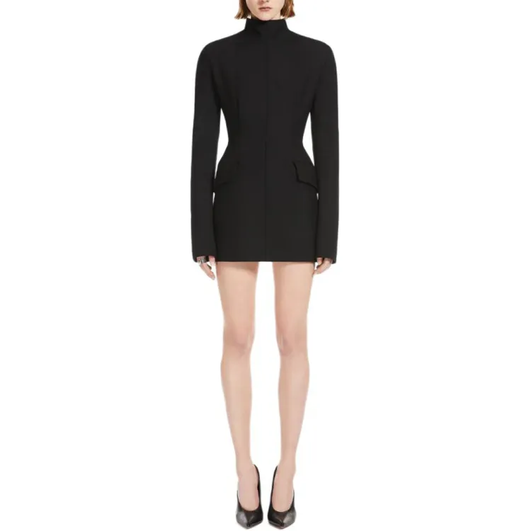 Спортивный Ma Длинное Платье с Длинными Рукавами Женское Черное
