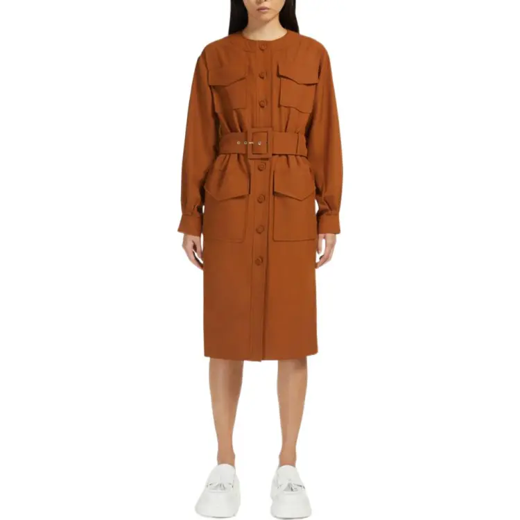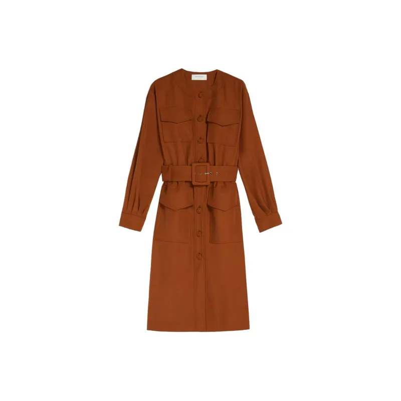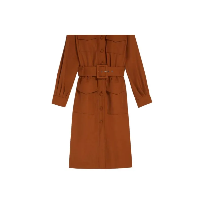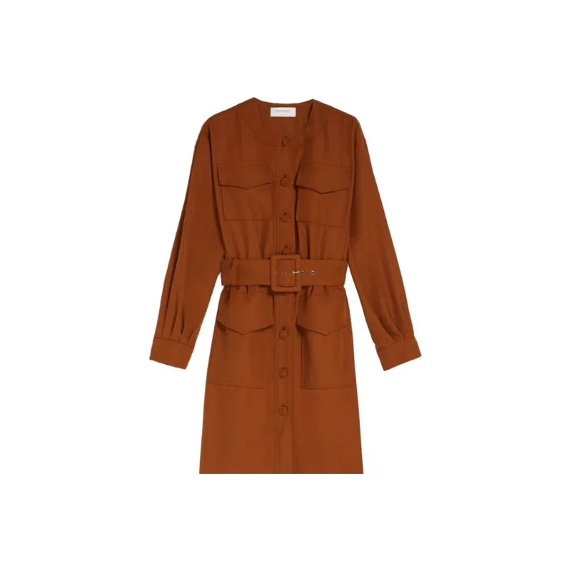 Спортивный Ma Длинное Платье с Длинными Рукавами Женское Коричневое