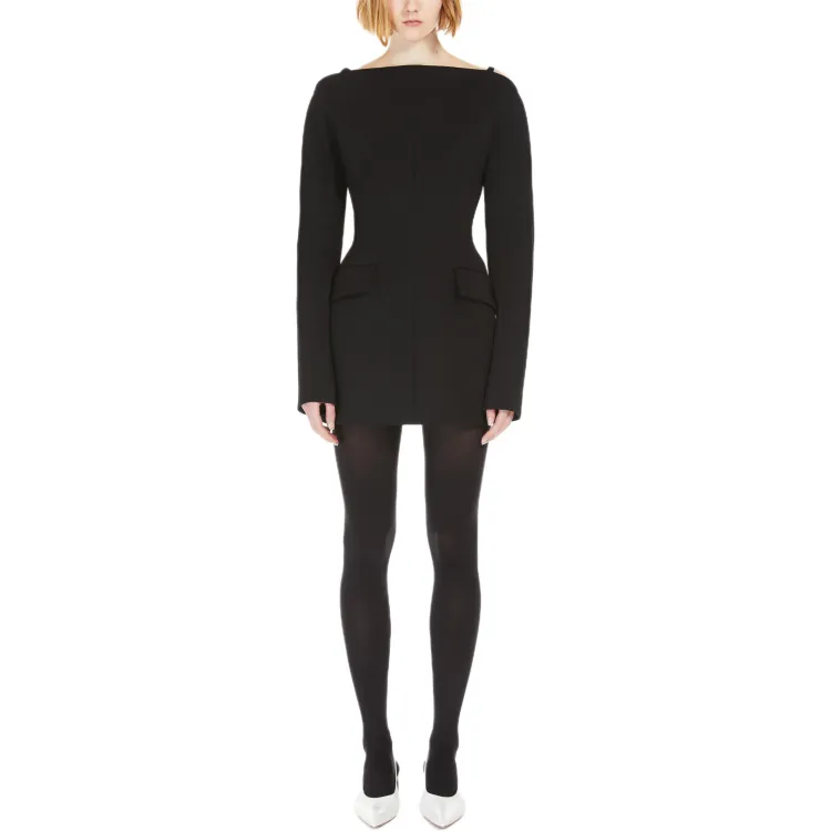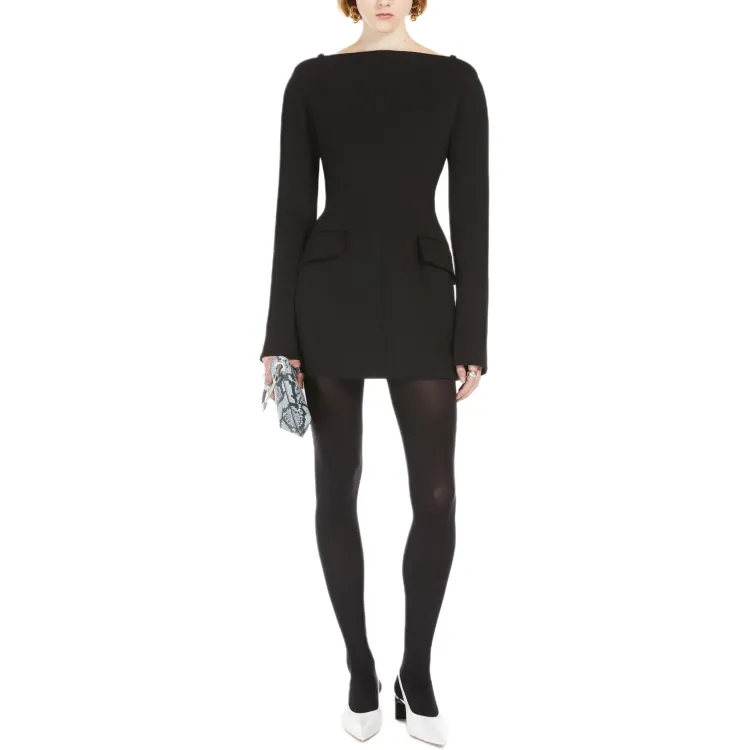 Спортивный Ma Длинное Платье с Длинными Рукавами Женское Черное